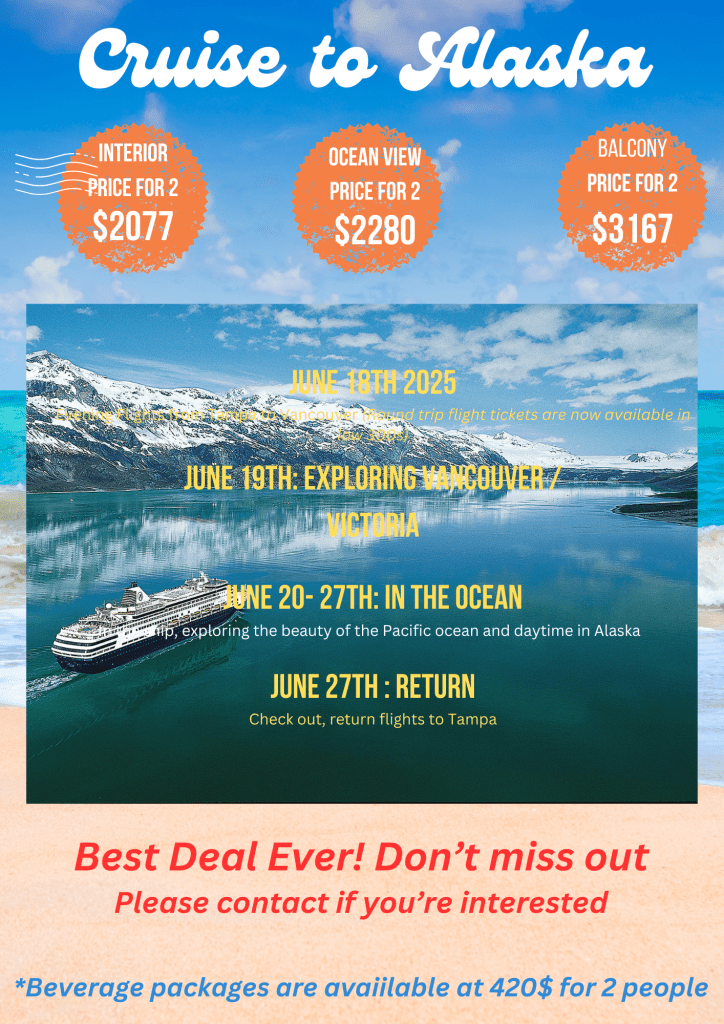 June 20th 2025 to June 27th – Exploring the beauty of Pacific ocean and day in Alaska!